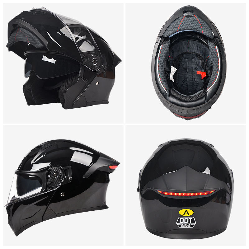Casques de moto modulables intégraux ou ouverts avec feux arrière LED, certifiés DOT, en ABS, doublure amovible – Vente en gros usine