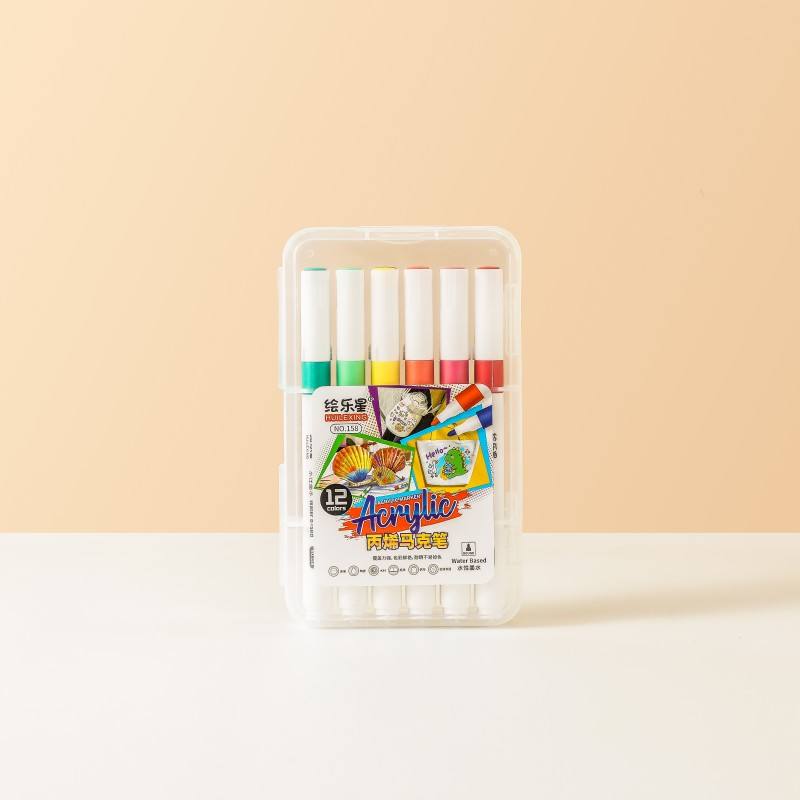 Usine en gros grande capacité feutre 12 couleurs acrylique à base d'eau Pigment encre marqueur stylo ensemble pour Windows Art artisanat bricolage