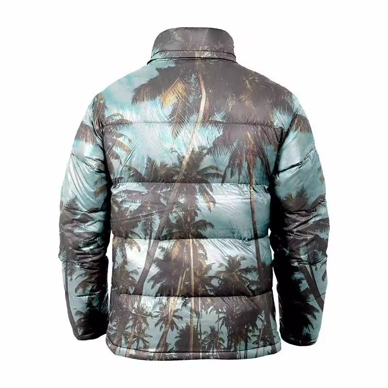 Vente en gros d'usine Doudounes pour homme Veste bouffante chaude coupe-vent à bulles en polyester imprimé par sublimation pour homme