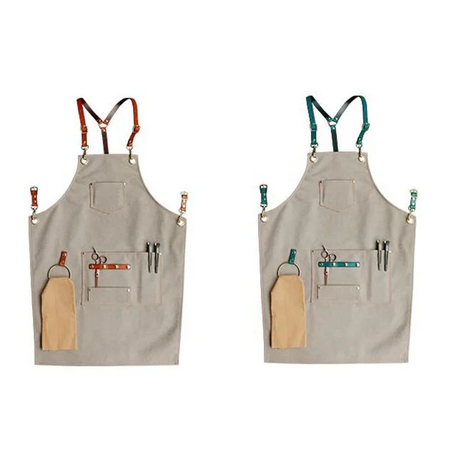 Factory Wholesale Men and Women's Cross Back Cotton Chef Aprons Canvas With Large Pockets