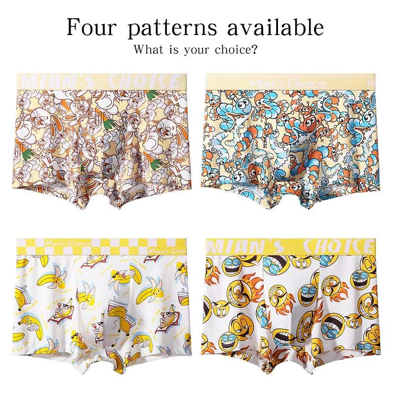 Usine en gros hommes mi-hauteur rose boxeurs 1 pièce jaune dessin animé impression glace soie soyeux respirant sous-vêtements tricoté tissu