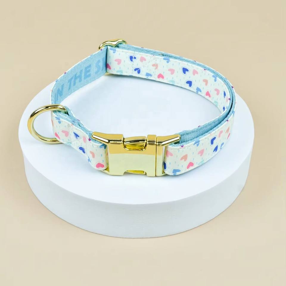 Usine en gros matériel en métal personnalisé accepter de luxe réglable concepteur mignon coeur impression coloré collier de chien de compagnie