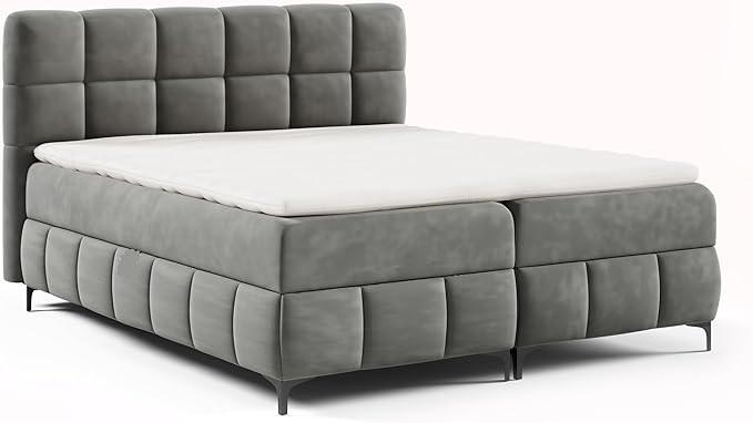 Lit à sommier tapissier moderne en gros d'usine, revêtement en velours doux/lin capitonné, base en bois/ressorts ensachés, confortable