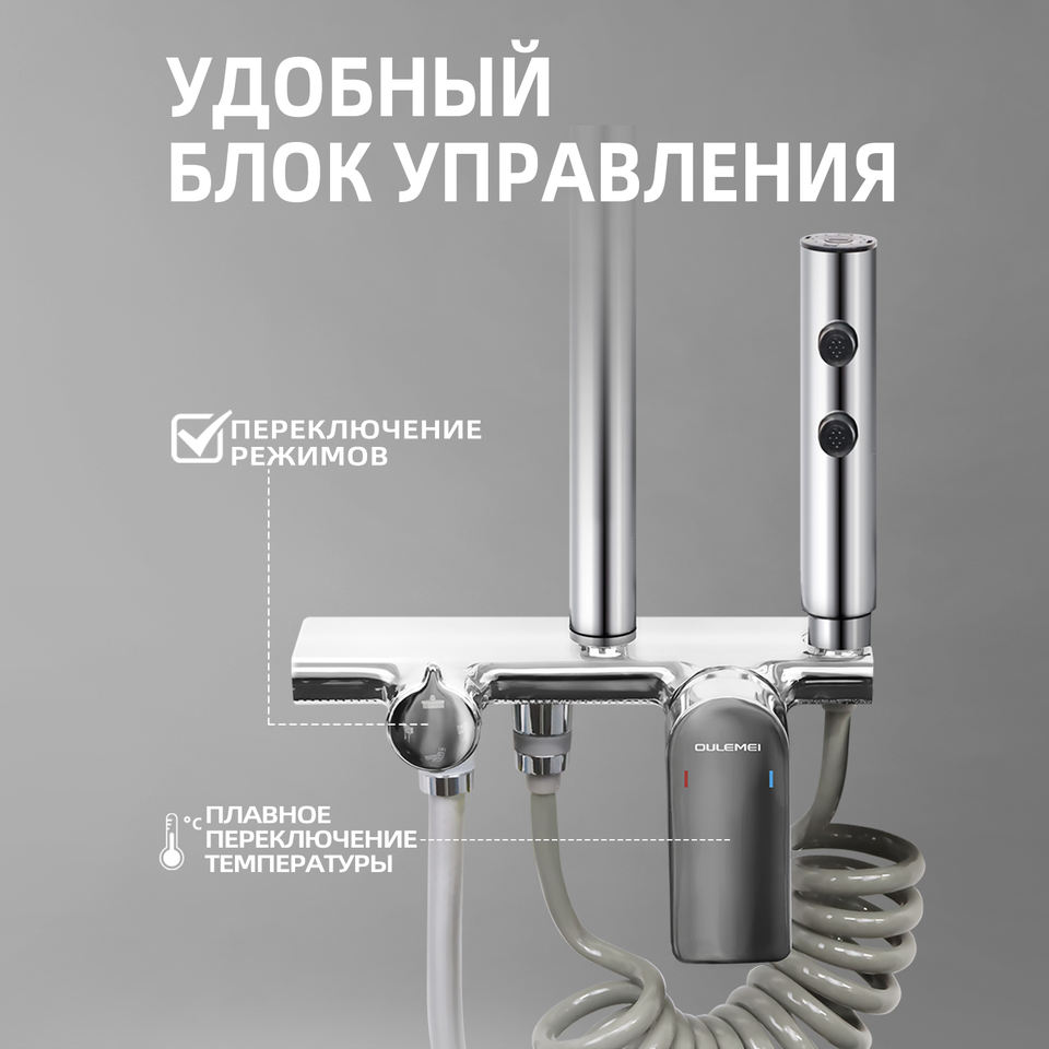 Ensemble douche-baignoire mural moderne en acier inoxydable gris anthracite, vente en gros d'usine