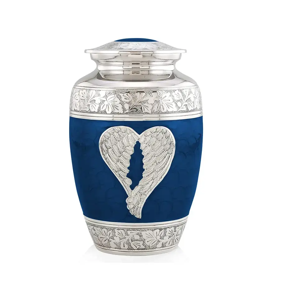Urne funéraire moderne artisanale en émail motif colibri – Urne commémorative indienne en aluminium – Vente en gros usine