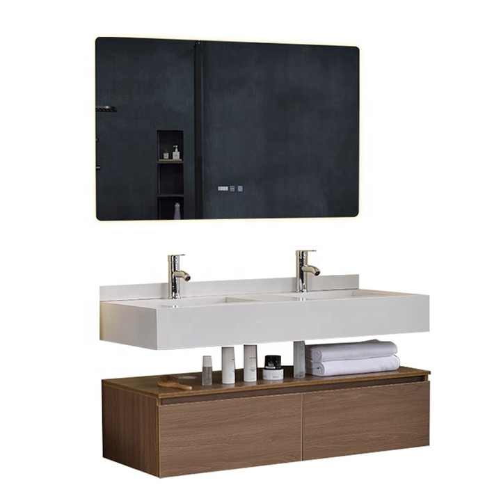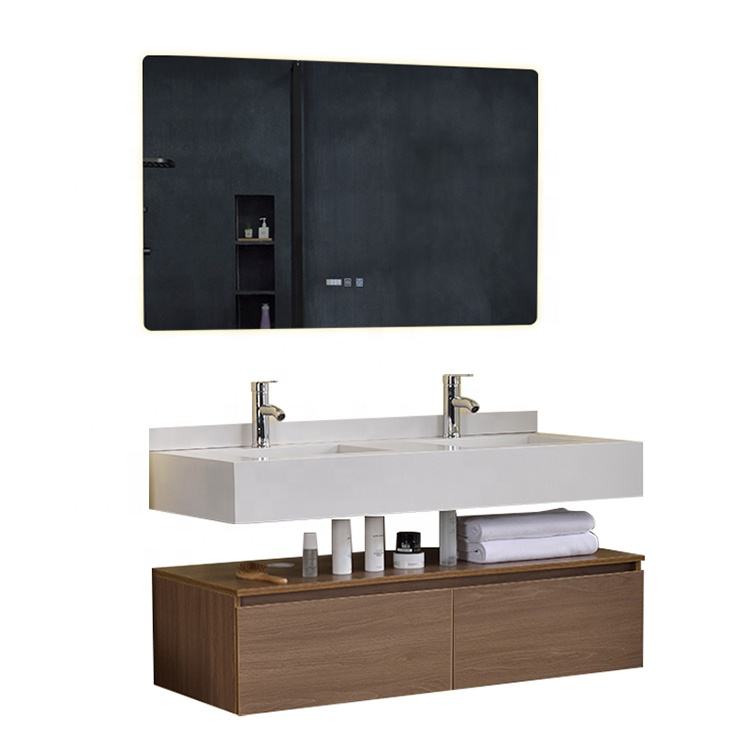 Vente en gros d'usine Meuble-lavabo de salle de bain au design italien moderne avec lavabo en céramique et miroir intelligent