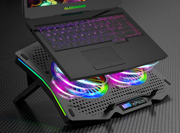 Refroidisseur de support pour ordinateur portable en gros d'usine avec 7 modes RVB + 6 niveaux de vitesse du ventilateur + LCD convient au refroidisseur d'ordinateur portable 10-18