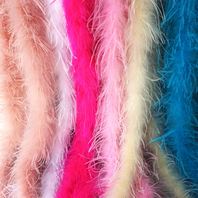 Vente en gros d'usine, bande de plumes d'autruche, laine, teinte, boa de plumes pour vêtements de danse de performance, matériel décoratif DIY