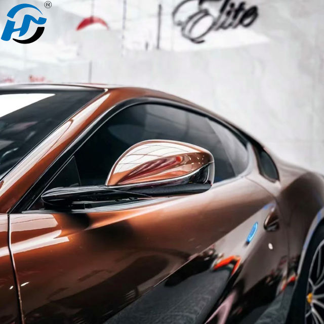 Factory Wholesale PET TPU HD Glossy Liquid Metallic Pyrite Coco Brown Car Wrap Vinyl 1.52X18M/5X60FT Full Roll Size Car Stickers
