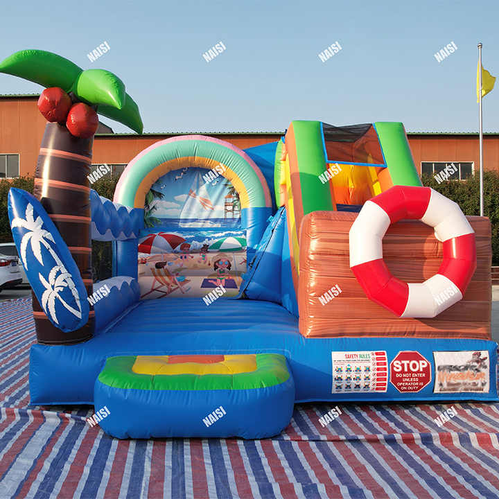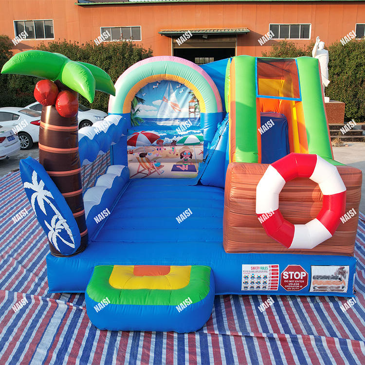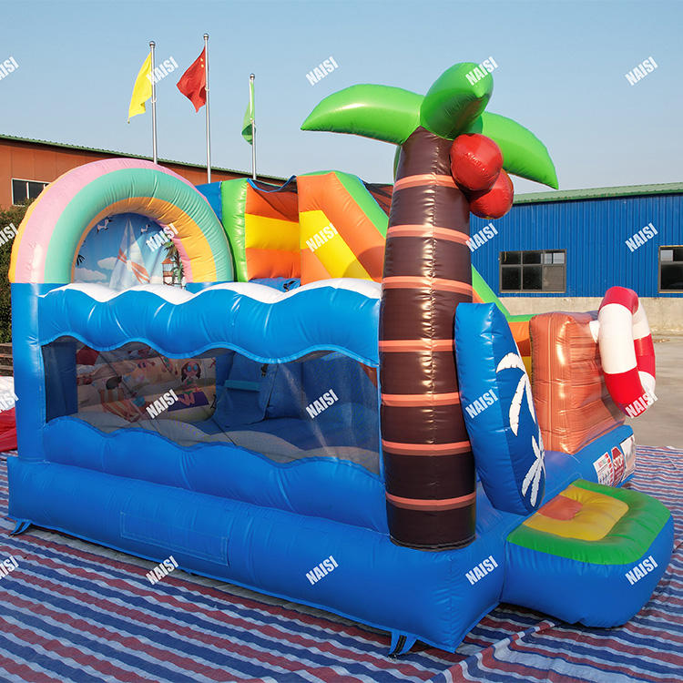 Vente en gros d'usine de palmiers arc-en-ciel sable plage Style commercial PVC gonflable saut rebond maison avec toboggan Combo pour la fête
