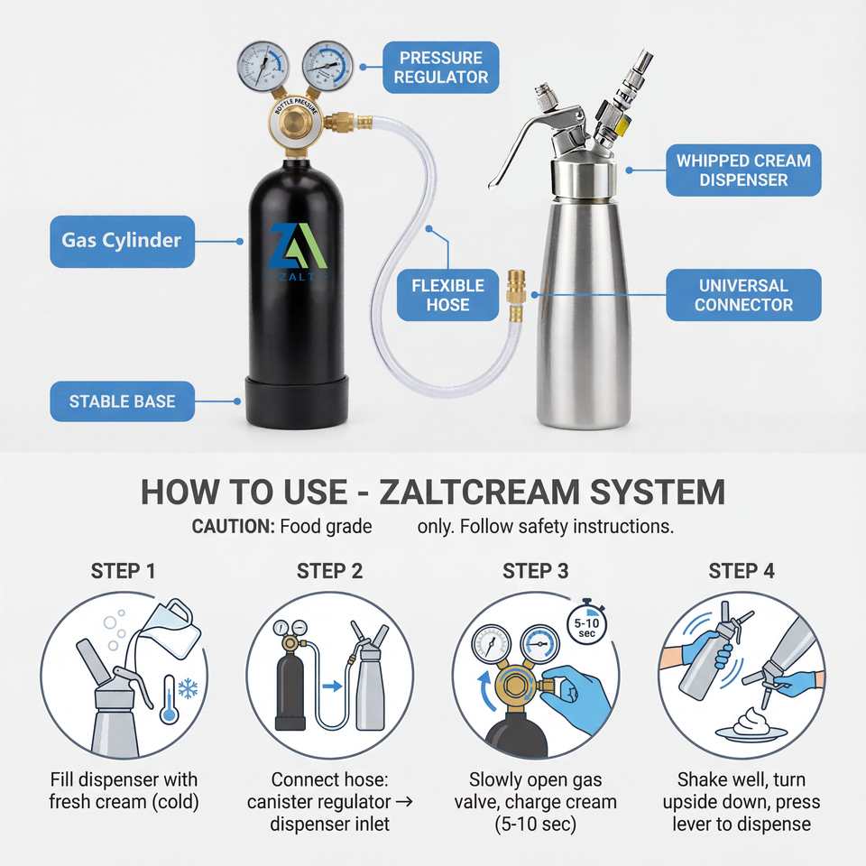 Vente en gros usine – Cylindre de gaz portable de luxe en acier jetable de 4,5 L pour crème fouettée