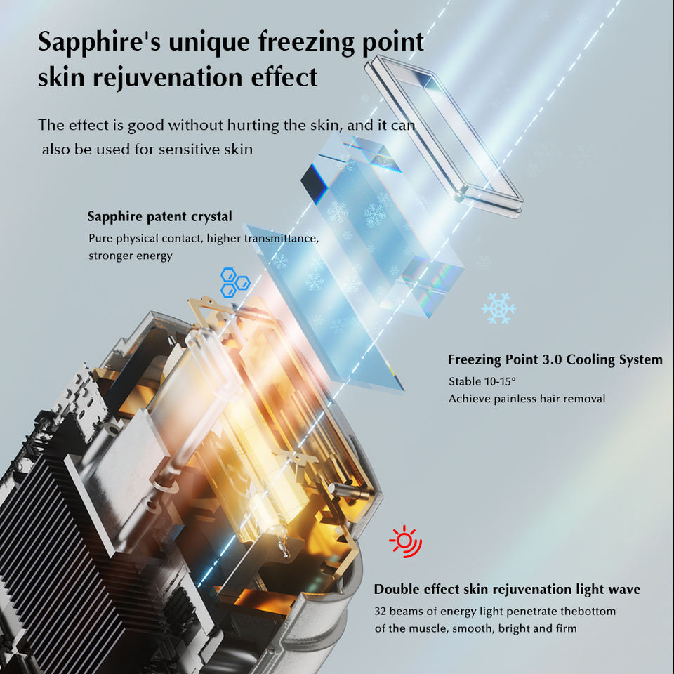 Prix d'épilation portable en gros d'usine Ipl Epliator saphir Appareil d'épilation indolore pour tout le corps du visage à la maison