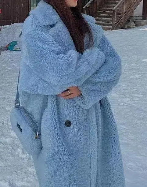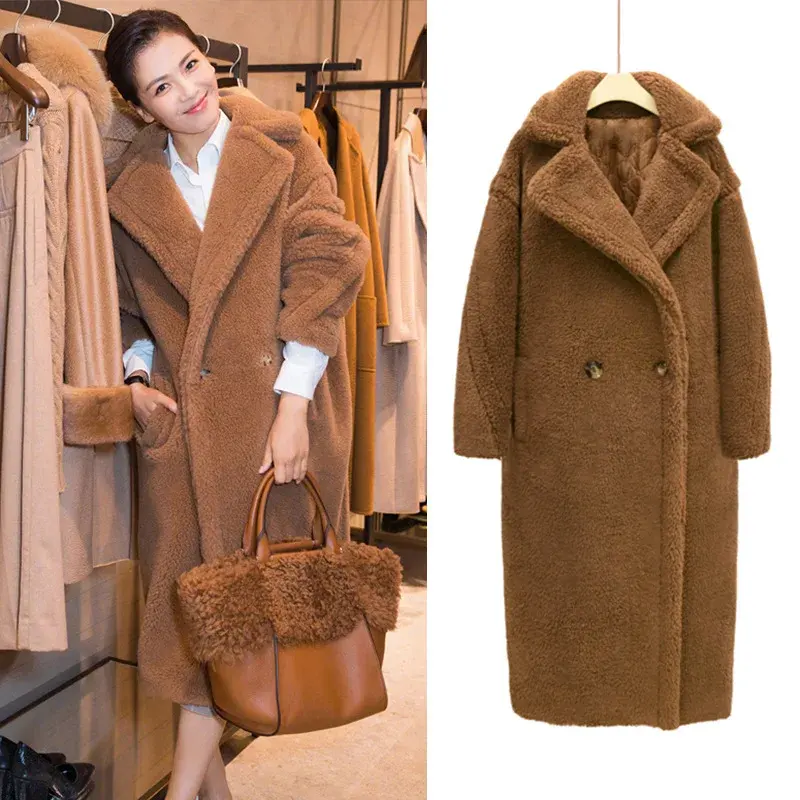 Usine prix de gros américain populaire Style fausse laine fourrure Long manteau ours en peluche fausse laine fourrure Long manteau pour les femmes