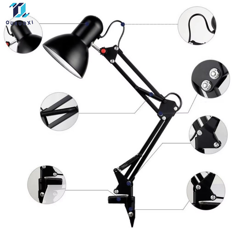Lampe de bureau pliable à pince, design classique, fabrication professionnelle, multicolore, pour étude et lecture, vente en gros d'usine