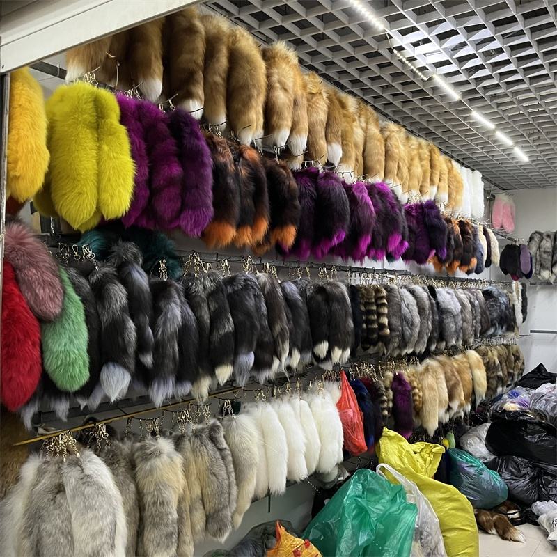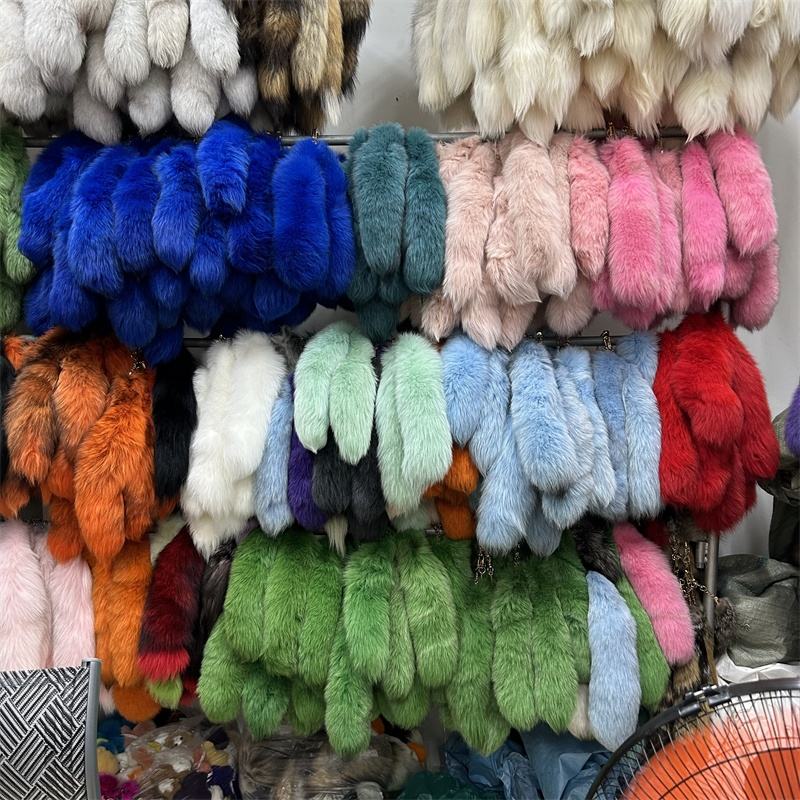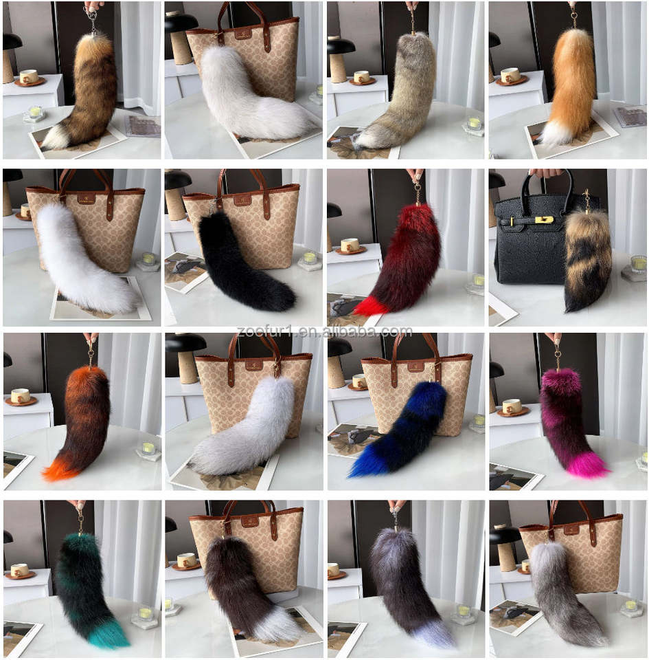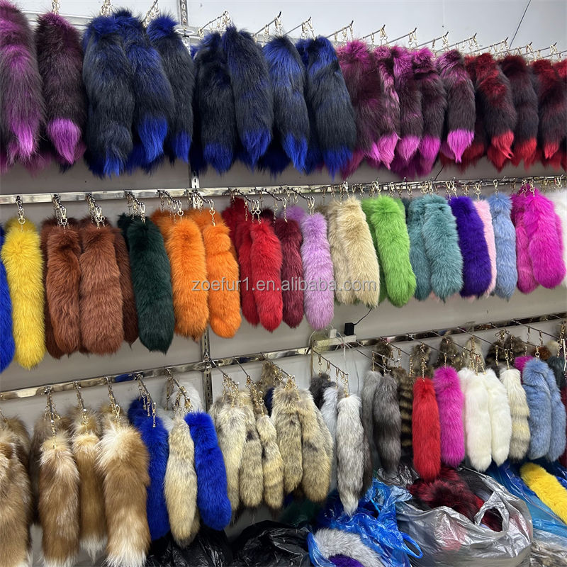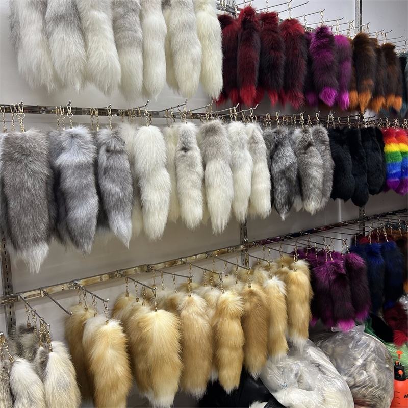 Queue de renard véritable en gros d'usine, 35-45 cm, queue de renard moelleuse, fourrure animale pour accessoires de décoration, queue de renard naturelle en fourrure pour porte-clés