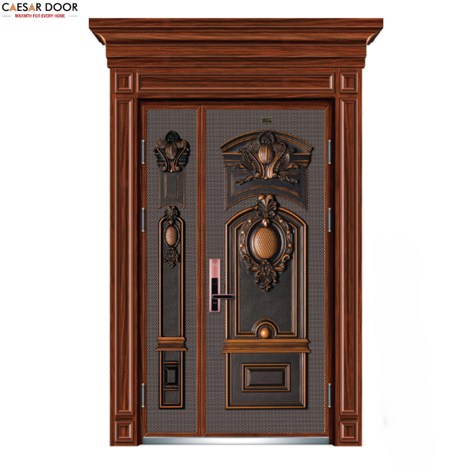 Porte d'entrée de sécurité en acier inoxydable de style rétro, vente en gros d'usine, durable, pour villa, extérieur, imperméable et résistante à la chaleur