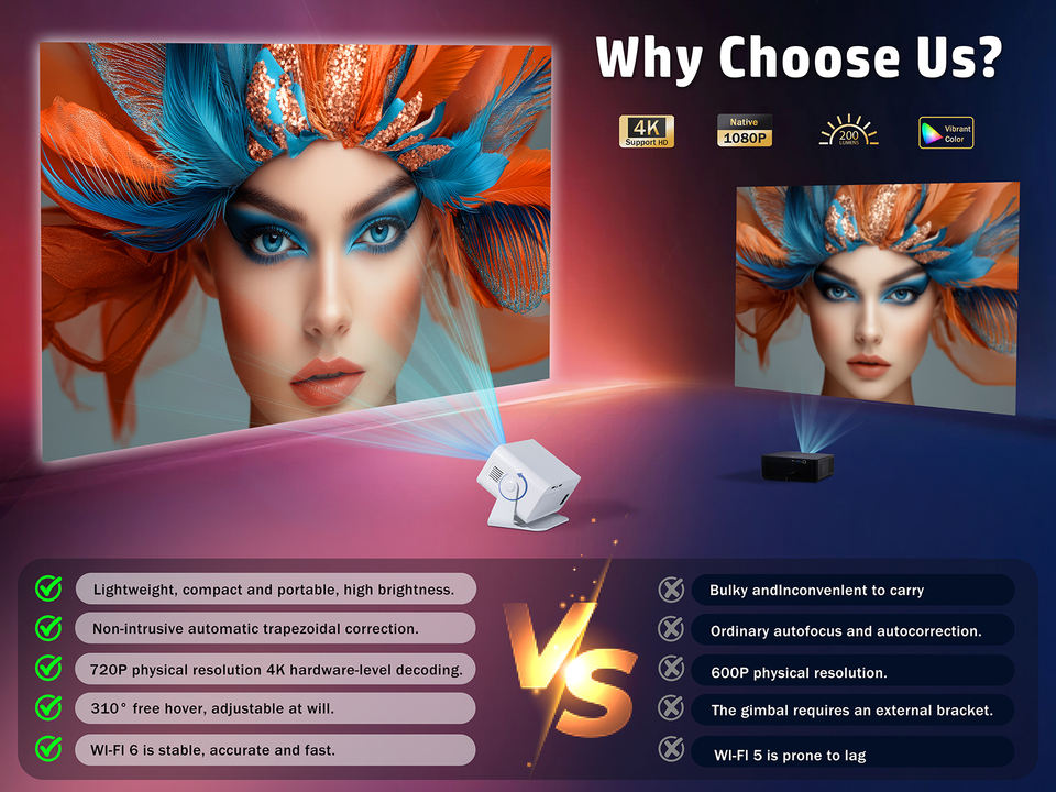 Projecteur S6 PRO 4K en gros d'usine avec WiFi pour une utilisation extérieure à courte portée de 200 lumens pour mini projecteur