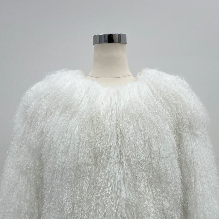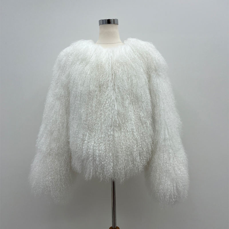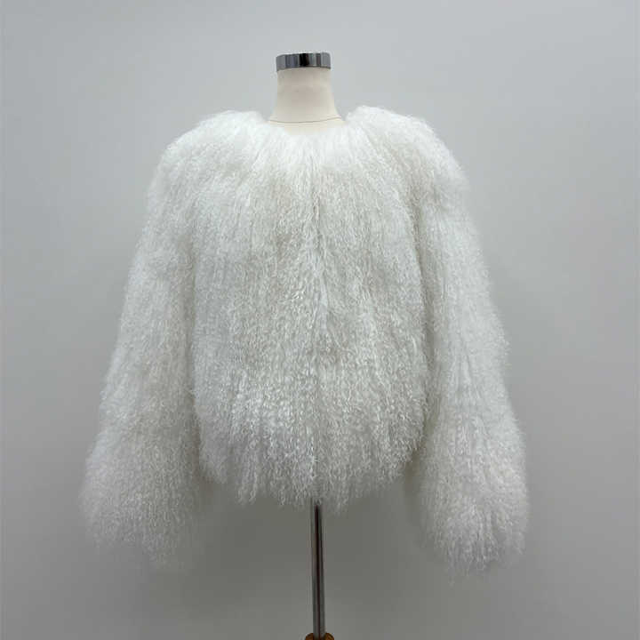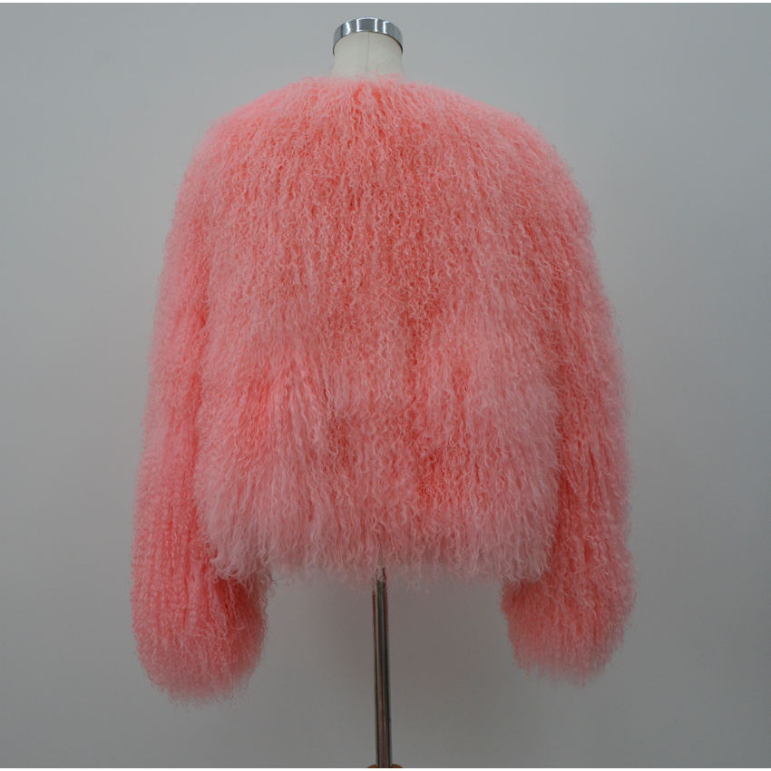 Vente en gros d'usine, manteau en fourrure véritable pour femmes, col rond court, couleur personnalisée, fourrure moelleuse et bouclée, veste en fourrure de mouton de Mongolie pour l'hiver