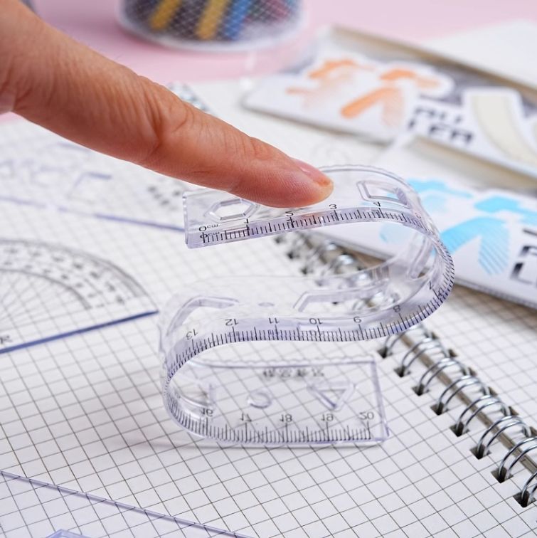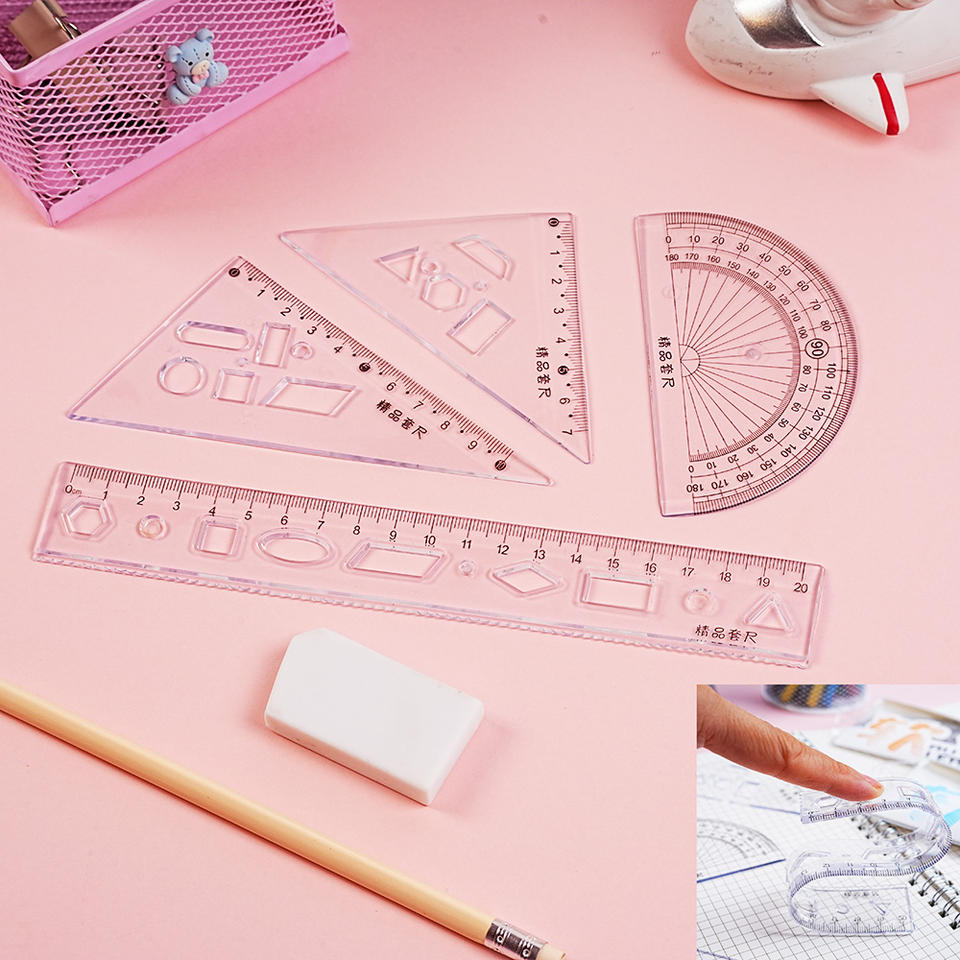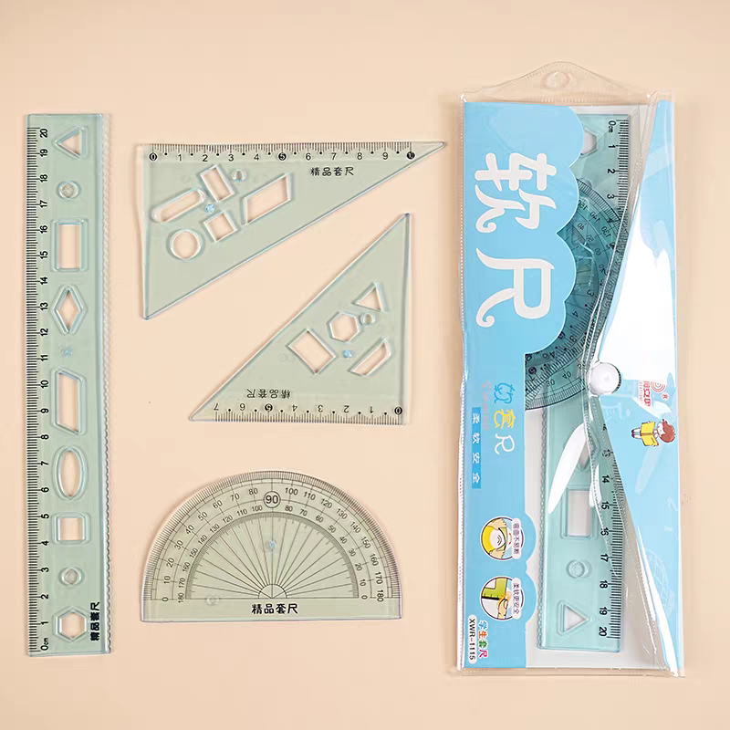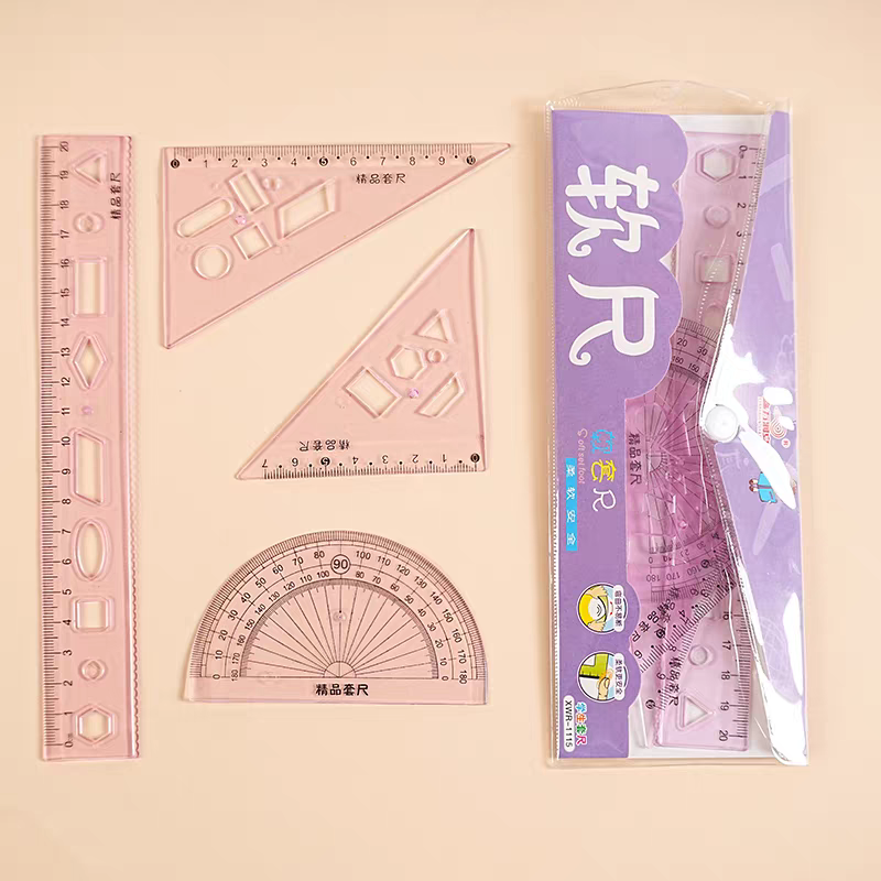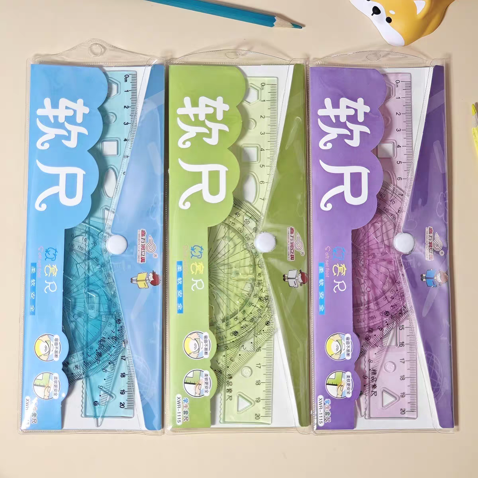 Ensemble de Mathématiques Souple en Plastique 4 Pièces, Vente en Gros Usine, pour Étudiants, Papeterie Flexible Incluant Crayon et Outils de Mesure Triangulaires