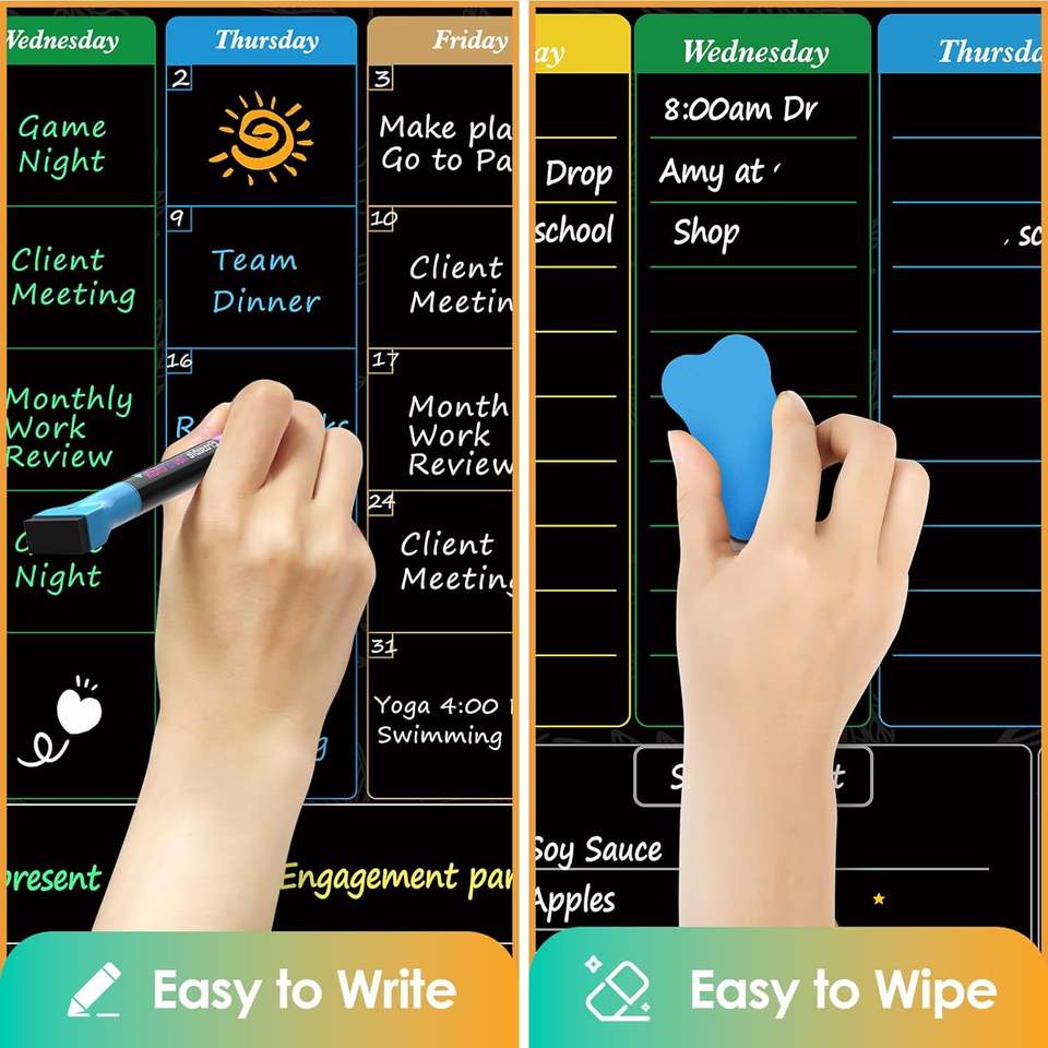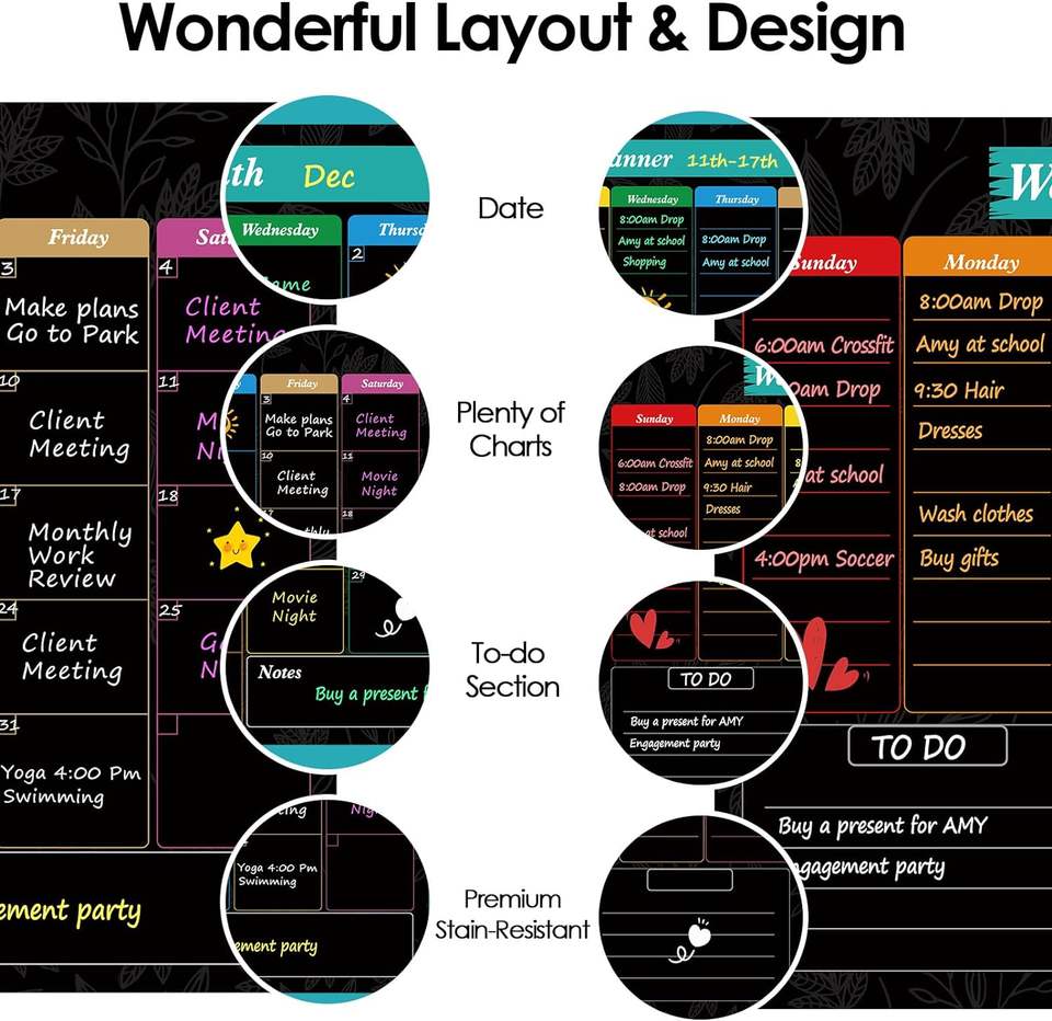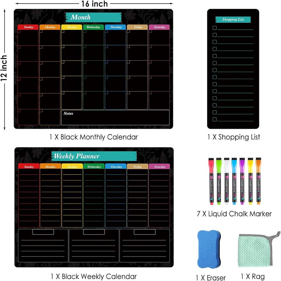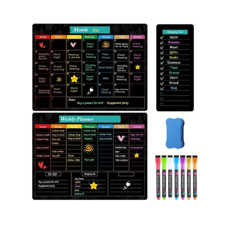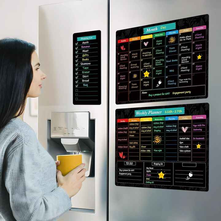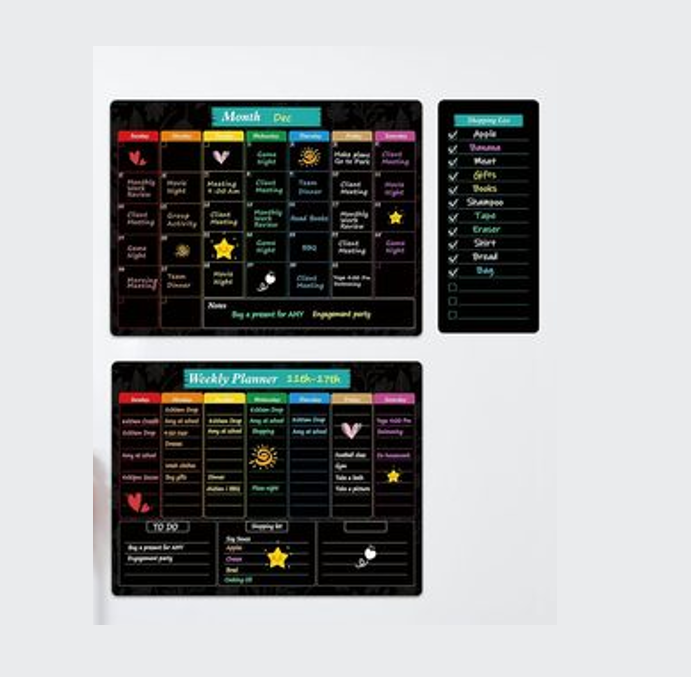 Usine de gros doux auto-adhésif décoratif personnalisé tableau magnétique calendrier hebdomadaire effaçable à sec tableau noir