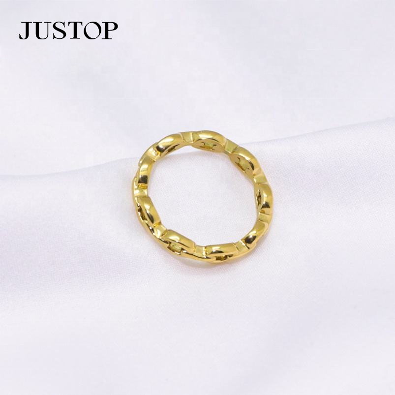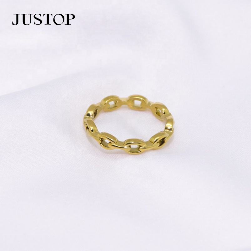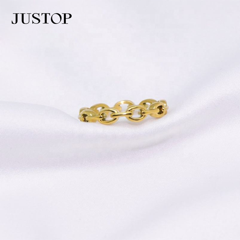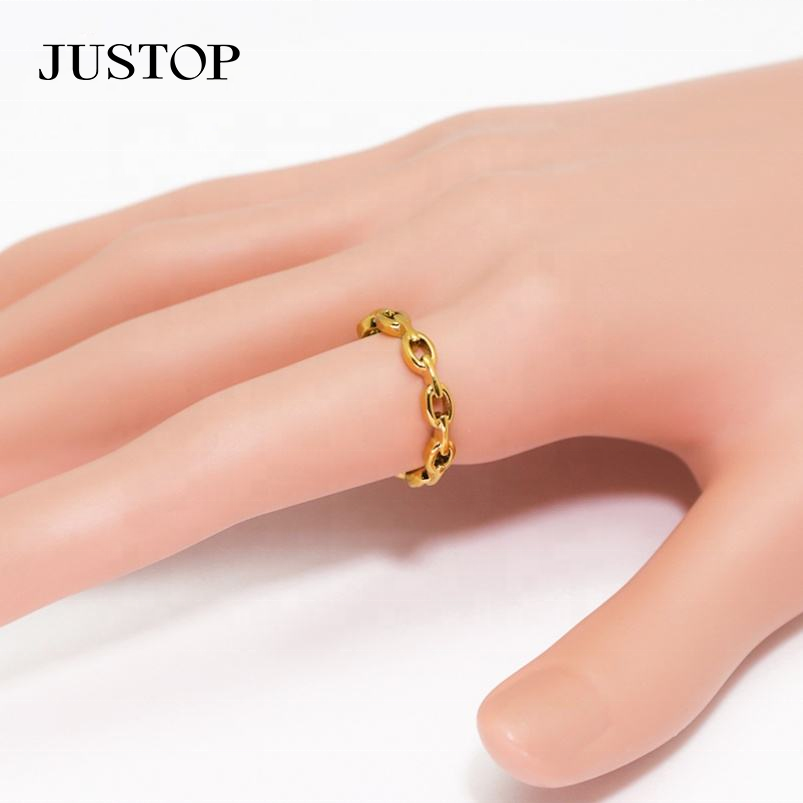 Vente en gros d'usine Justop, bagues classiques en acier inoxydable plaqué or véritable, résistantes au ternissement, imperméables et respectueuses de l'environnement