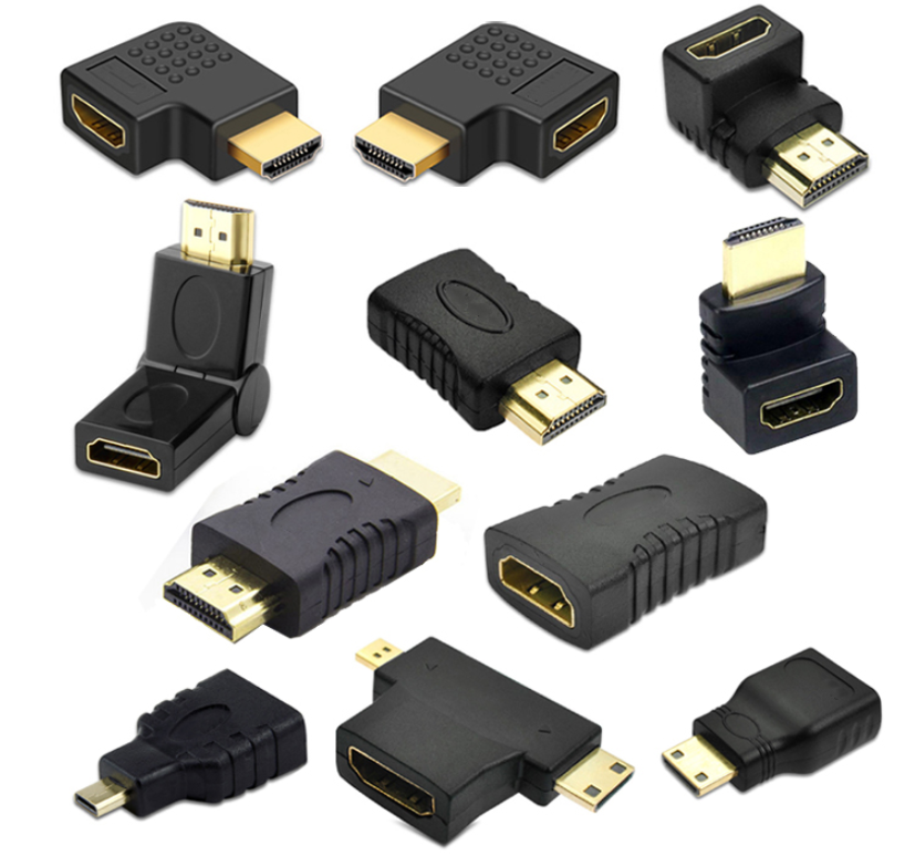 Adaptateur d'extension coudé à 90 degrés mâle-mâle en PVC plaqué or standard, vente en gros d'usine, pour HDTV