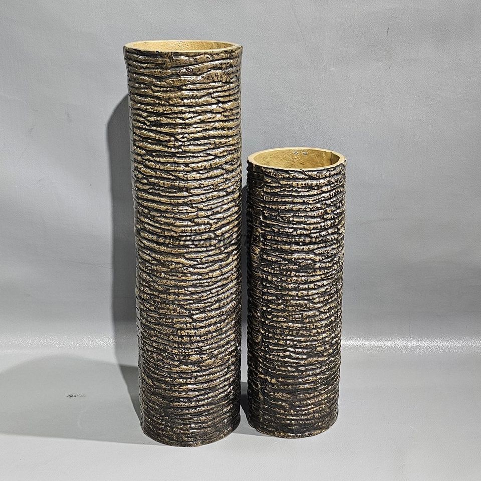 Factory Wholesale Stylish Brown Metal Vase Oval Design with Vertical Lines Ideal for Luxury Interior Hotels and Event Decoration