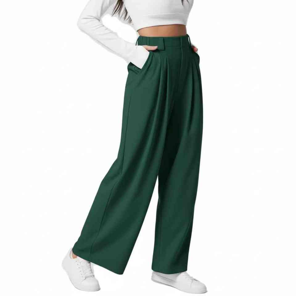 Usine en gros hiver femmes pantalons décontractés taille moyenne jambe large dentelle Anti-rides plat avant élastique taille fermeture