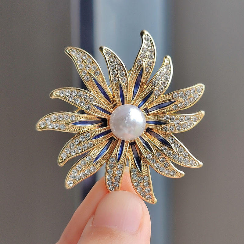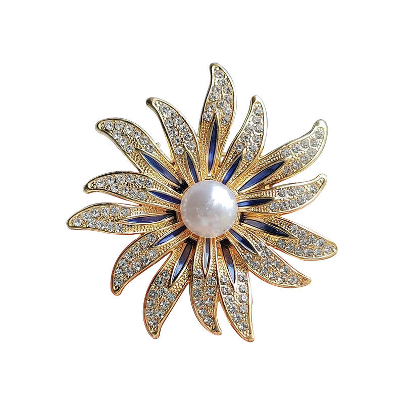 Product name:Pave Zircon Pearl Sun Flower Brooches