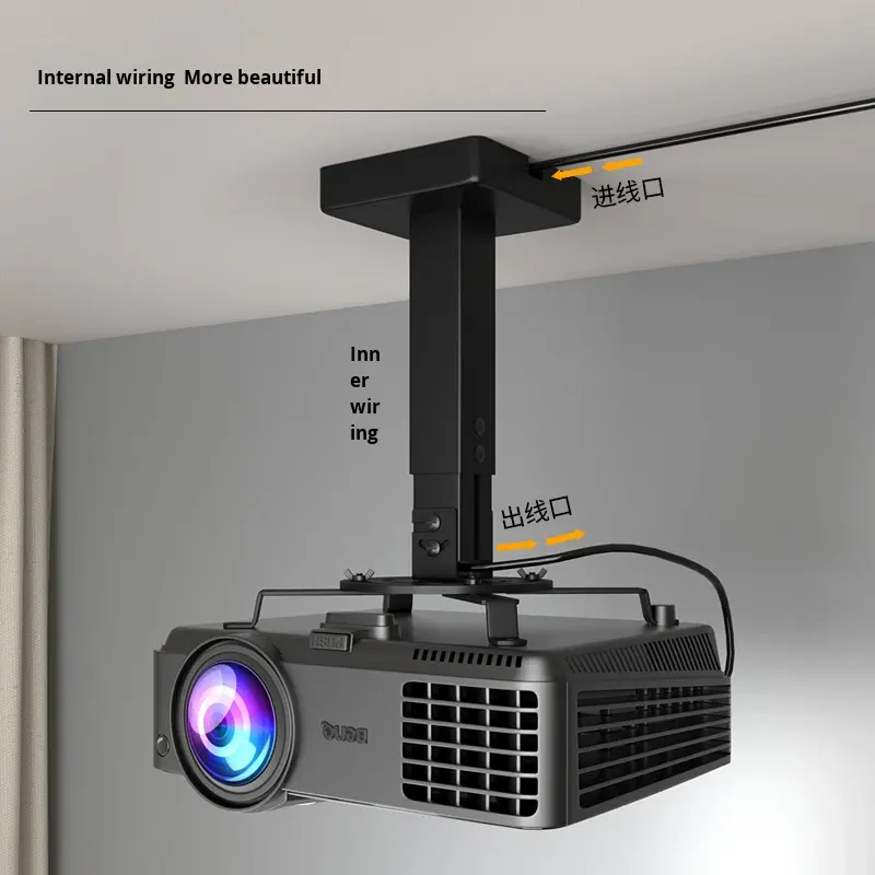 Support de plafond universel en métal pour projecteur, vente en gros d'usine, avec passage de câbles intégré pour personnalisation en vrac, compatible avec la plupart des projecteurs
