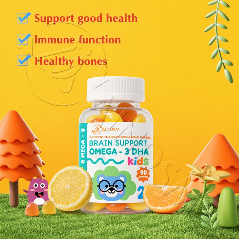 Factory Wholesale Vegan Omega 3 DHA Gummy Supplements Eye Health Support Immunity Boosting Candy