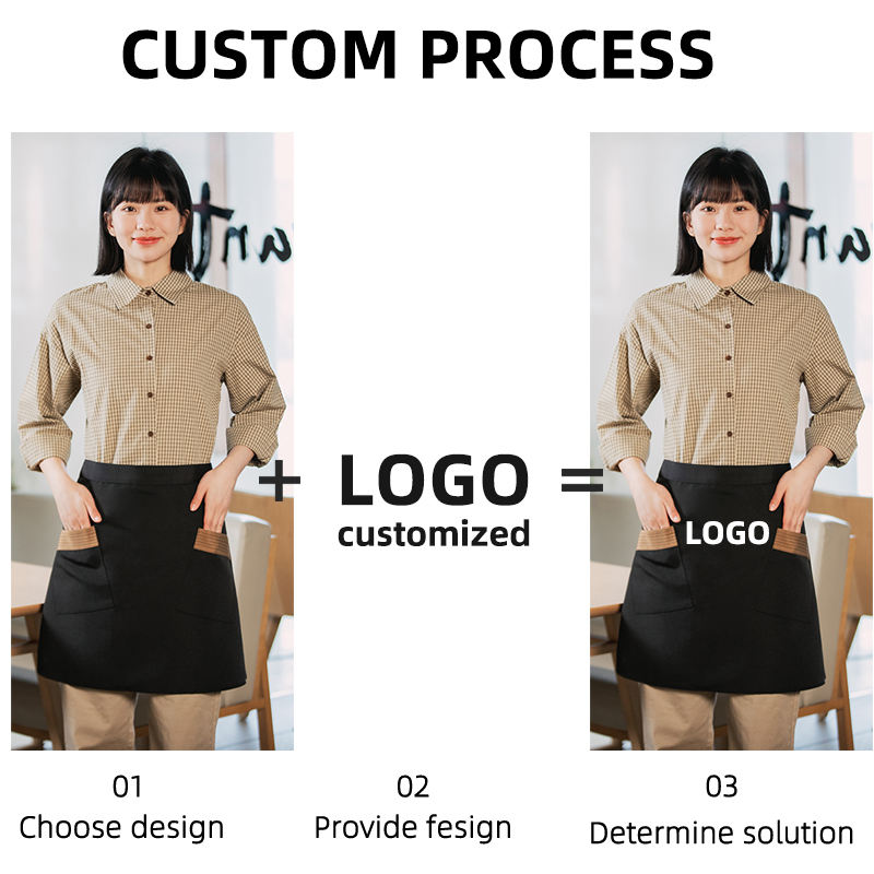 Usine en gros imperméable à l'eau toile résistant à l'huile demi tablier essuyer les mains Logo personnalisé tablier maison cuisine tablier