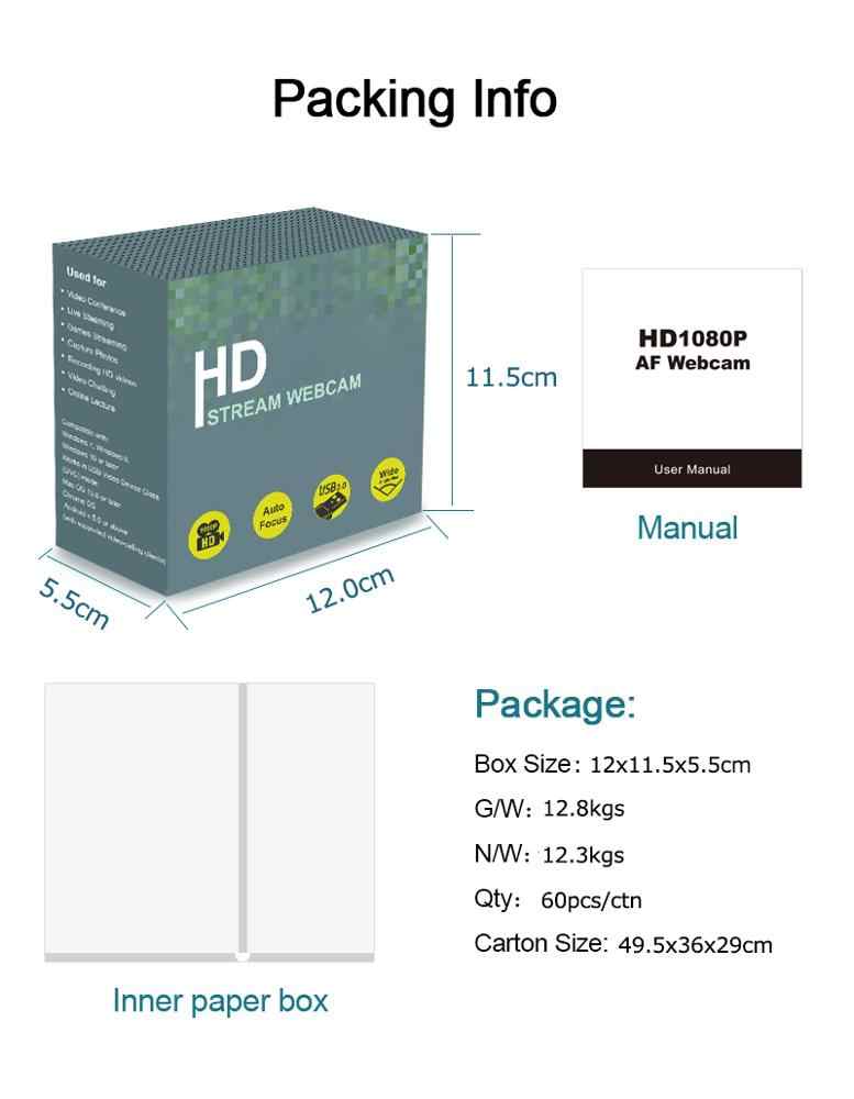 Webcam FHD 1080P, caméra USB, pour appels vidéo en direct, OEM, Autofocus, vente en gros