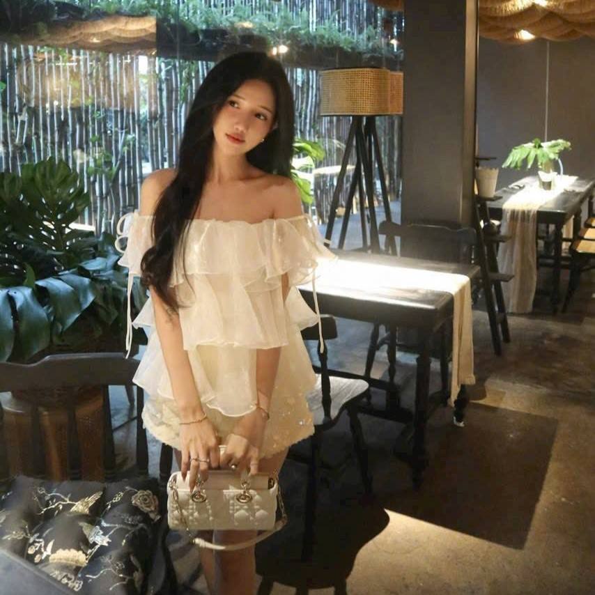 Blouse en mousseline blanche à volants et épaules dénudées pour femme, vente en gros d'usine