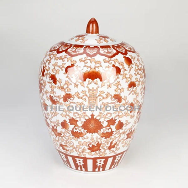 Pot de gingembre en céramique blanc et or en gros d'usine pot de gingembre de décoration ronde pour la décoration de la maison hôtel