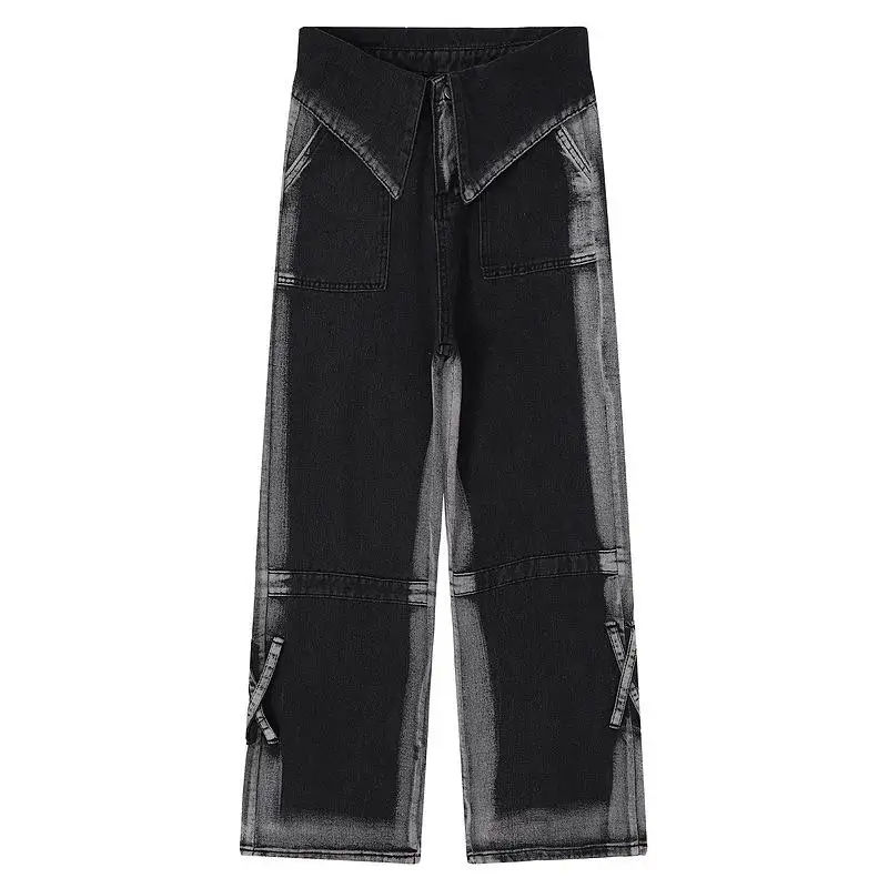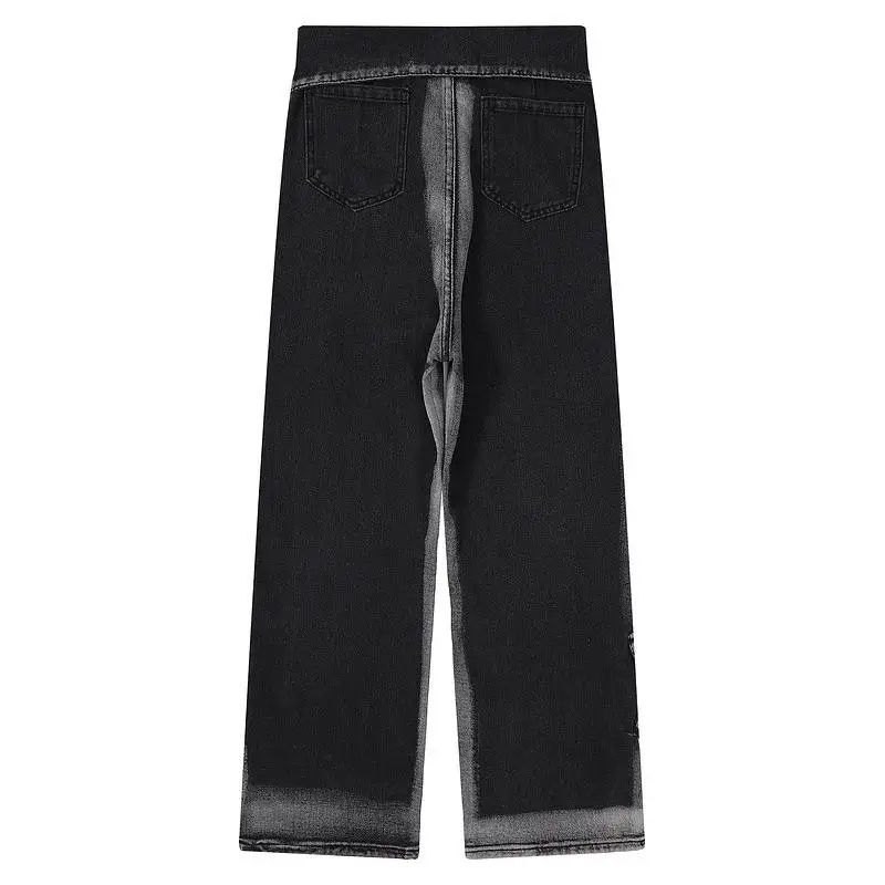 Jeans en denim ample à jambe droite, respirant, lavé, uni, pour hommes, vente en gros d'usine