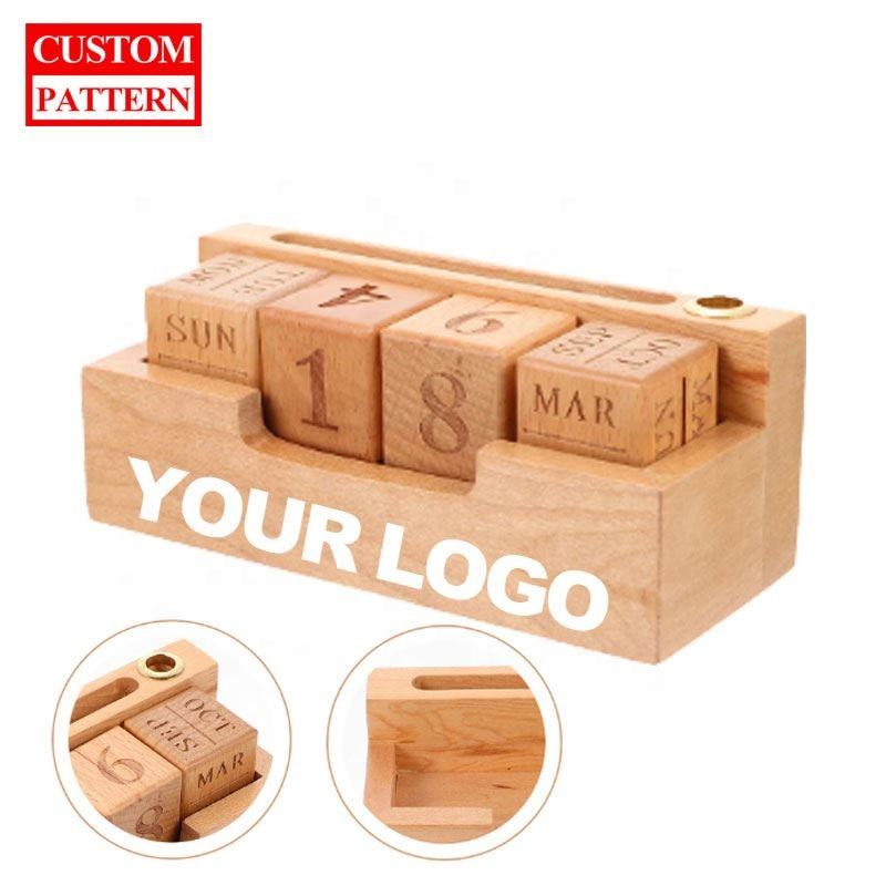 Vente en gros d'usine Calendrier de bureau en bois Logo personnalisé Cube de bureau Bloc de construction Base de calendrier