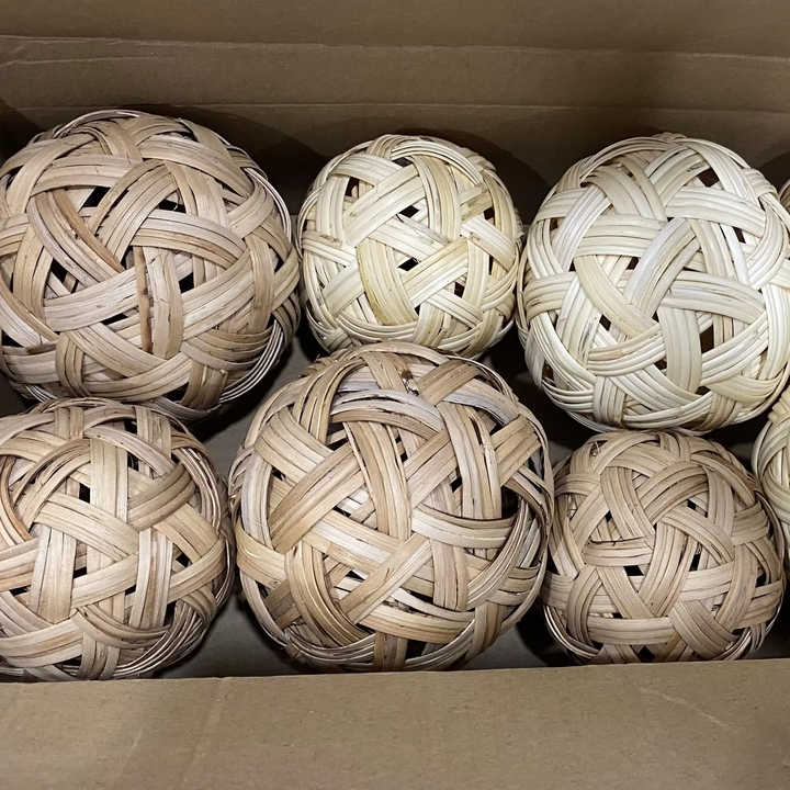 Boule de rotin naturel tissée en usine 10cm 12cm 15cm pour le jeu de sport Takraw et la décoration de Noël, tailles personnalisées disponibles.