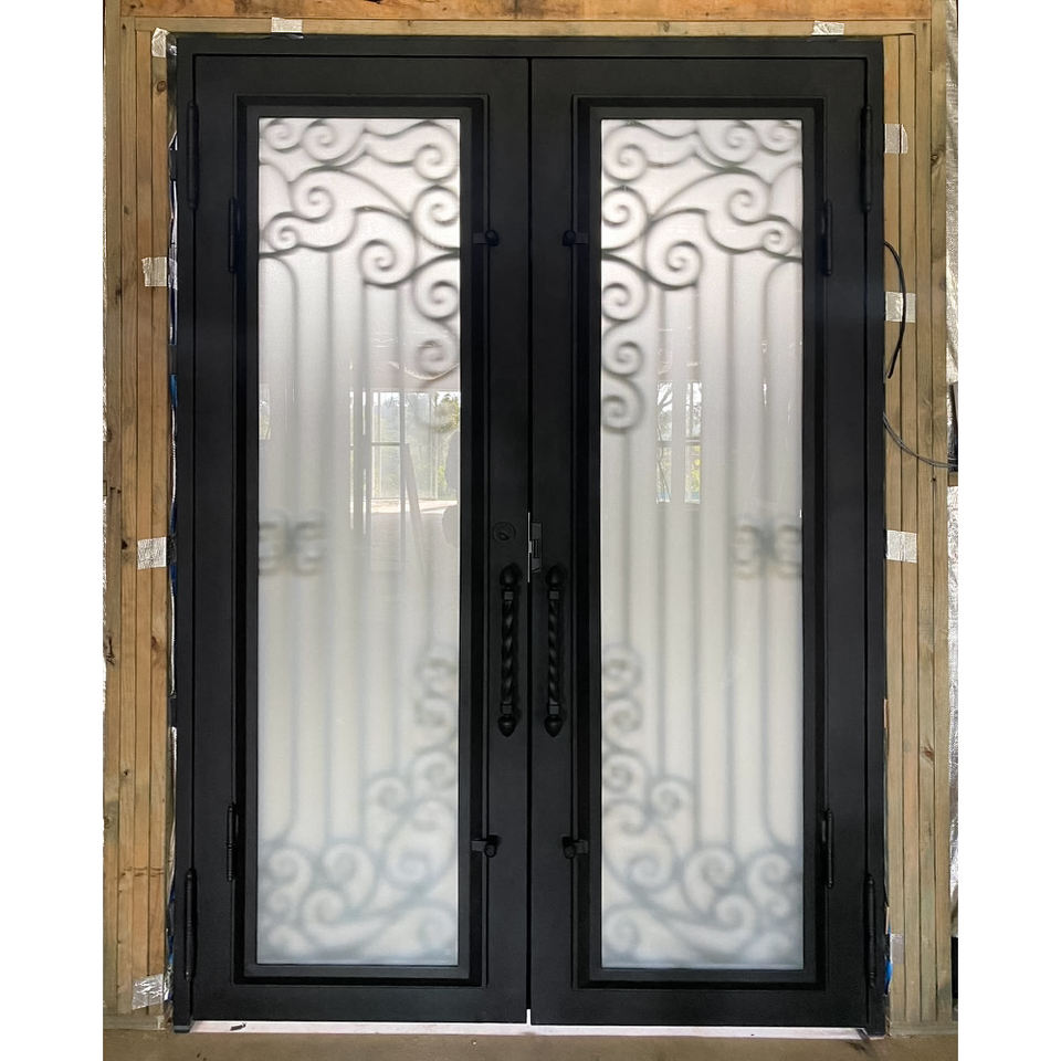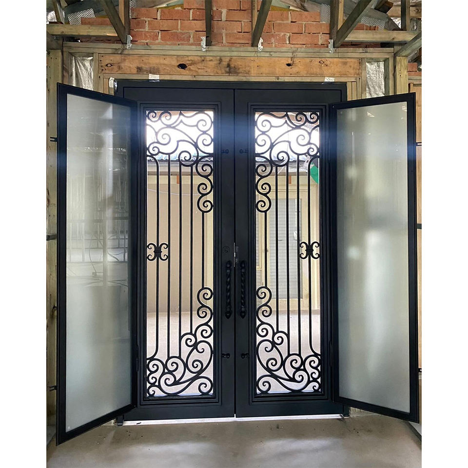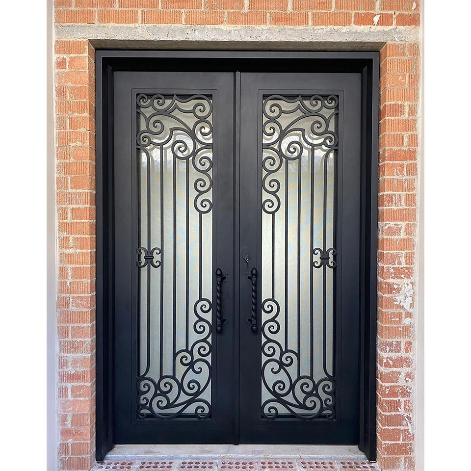 Portes françaises en fer forgé d'usine avec écran en maille pour maisons Décoration de porte d'entrée d'entrée finie enduite de poudre rustique