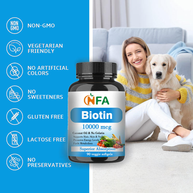 Personnalisation en usine sans gélatine 90 jours d'approvisionnement en biotine Gélules naturelles à la d-biotine Gélule alimente le métabolisme