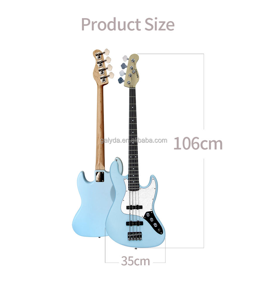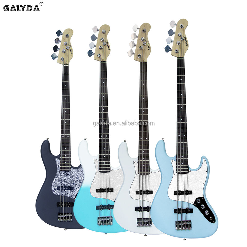 Guitare basse électrique personnalisée en usine, instrument de musique avec finition peinte, corps en peuplier pour débutant