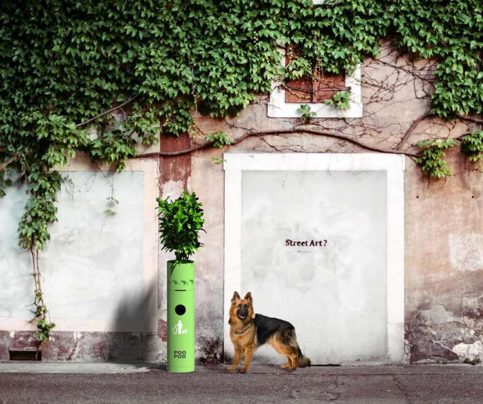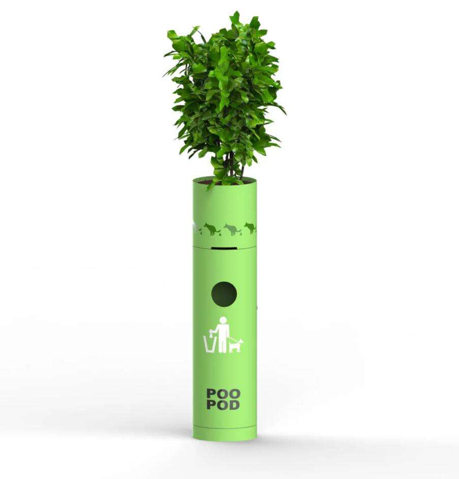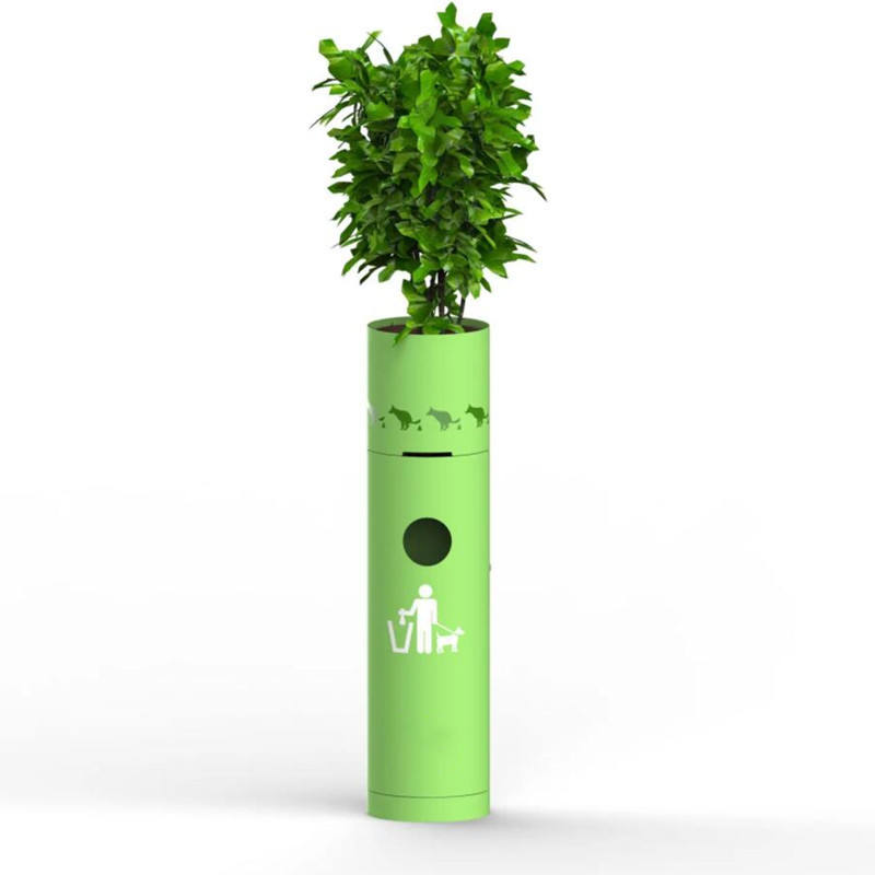 Factory design green round column trash bin with flower pot Customization Support Round Column Pet Street Waste Poop Container