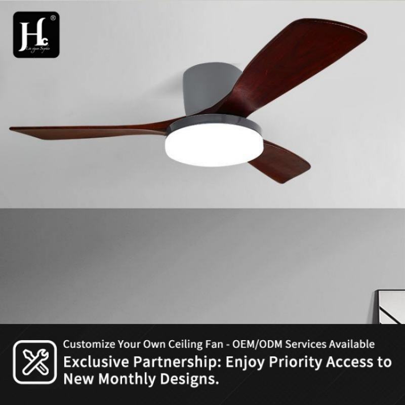 Ventilateur de plafond d'intérieur direct d'usine, décoration, télécommande intelligente, bois luxueux, LED avec lumière, ventilateur de plafond