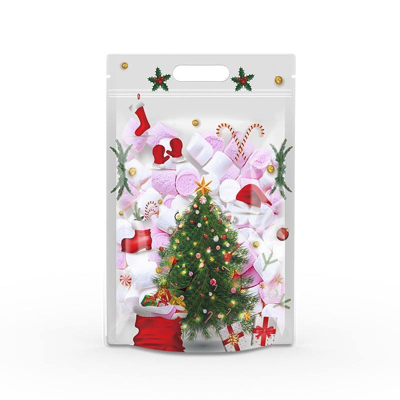 Nouveau sac imprimable en usine, autoportant et refermable à fermeture éclair, pour biscuits à motifs de dessins animés, dim sum croustillants flocon de neige, et snacks nougat