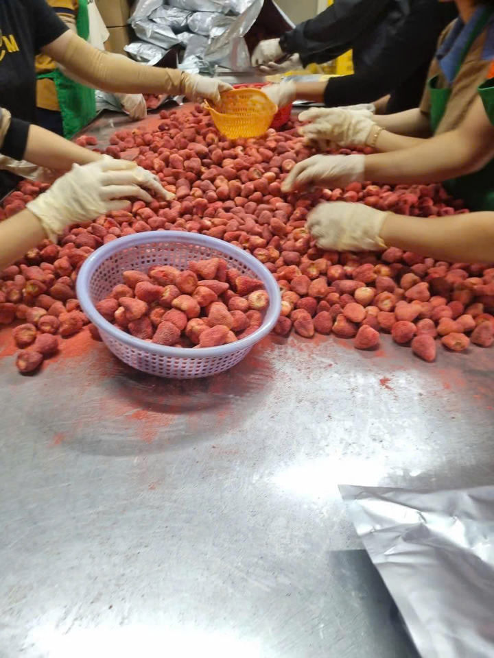 Fraises lyophilisées transformées en usine, conçues pour l'exportation en vrac vers les distributeurs, les grossistes et les partenaires alimentaires étrangers