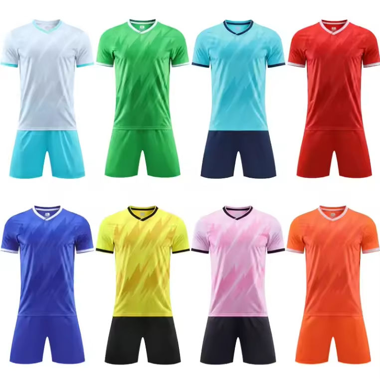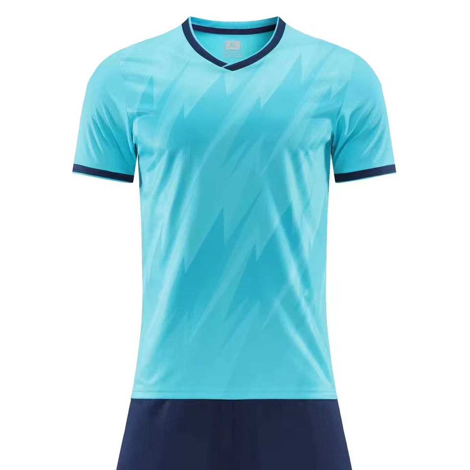 Maillot d'entraînement de football personnalisé en stock d'usine, uniforme à manches courtes en tissu polyester, uniformes de football