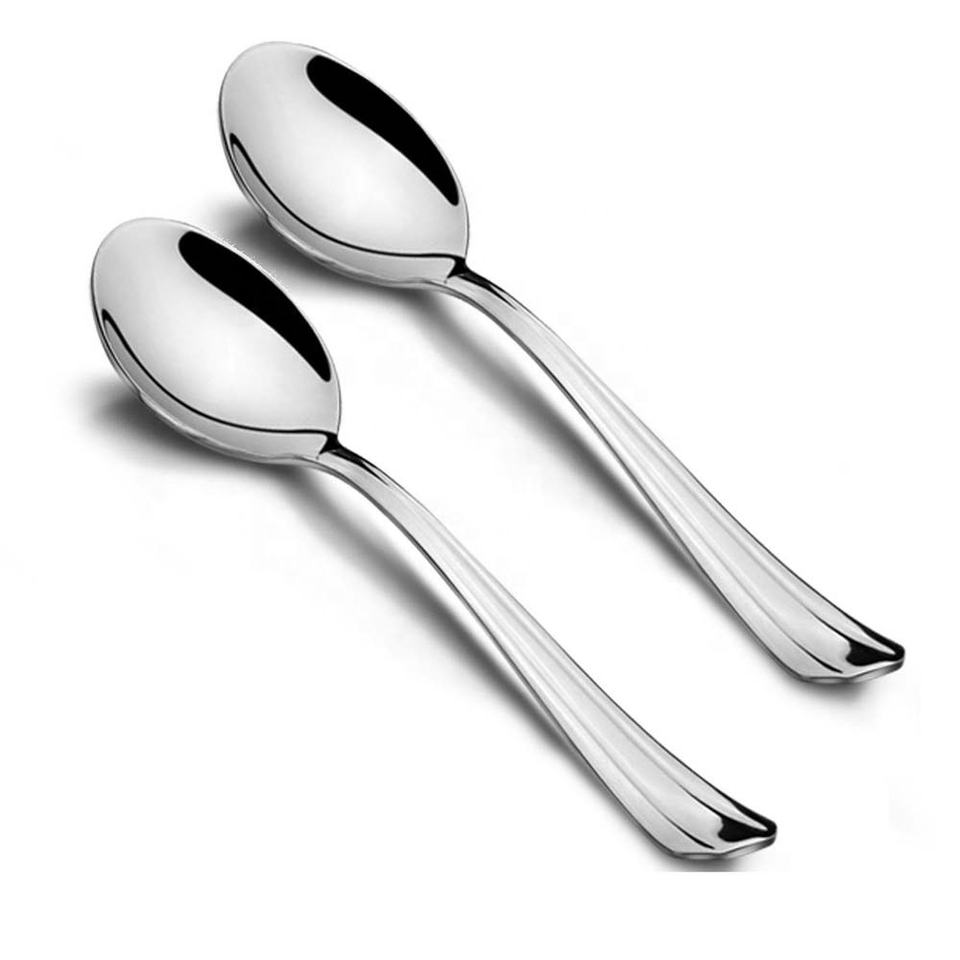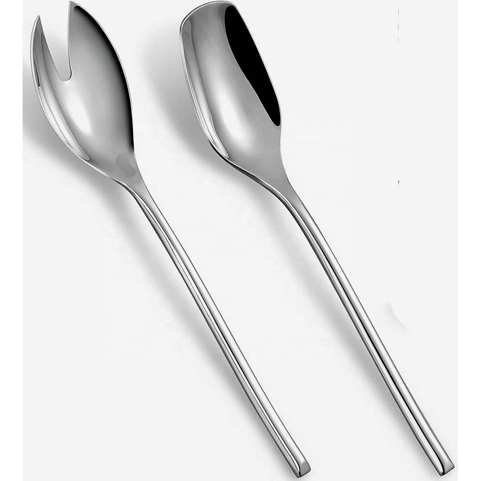 Usine En Gros Dîner Fourchette Cuillère Ensemble Avec Long Manche Cuillère À Salade Serveurs En Acier Inoxydable Plaqué Argent Cuillères De Service