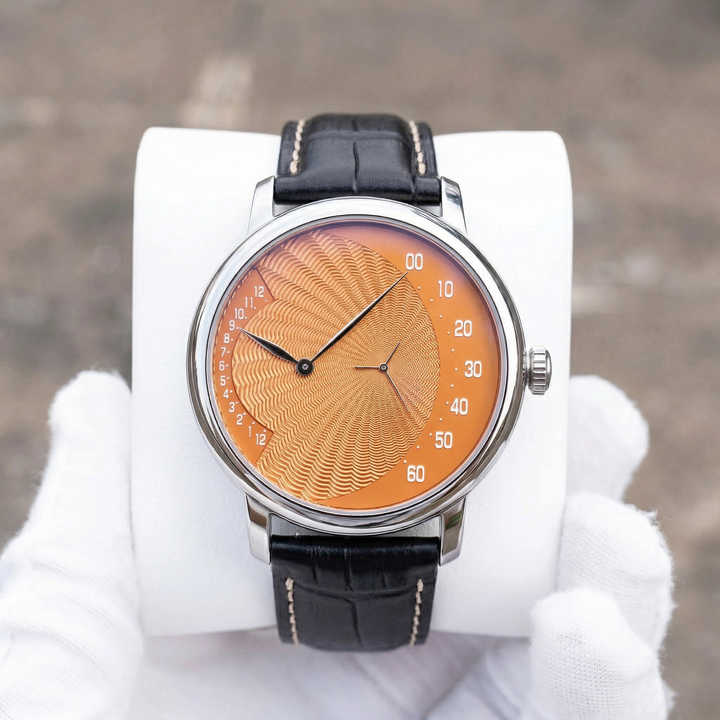 Montres mécaniques automatiques de luxe pour hommes, personnalisées OEM ODM, avec heures sautantes, minutes rétrogradées, motif guilloche ondulé, cadran saumon