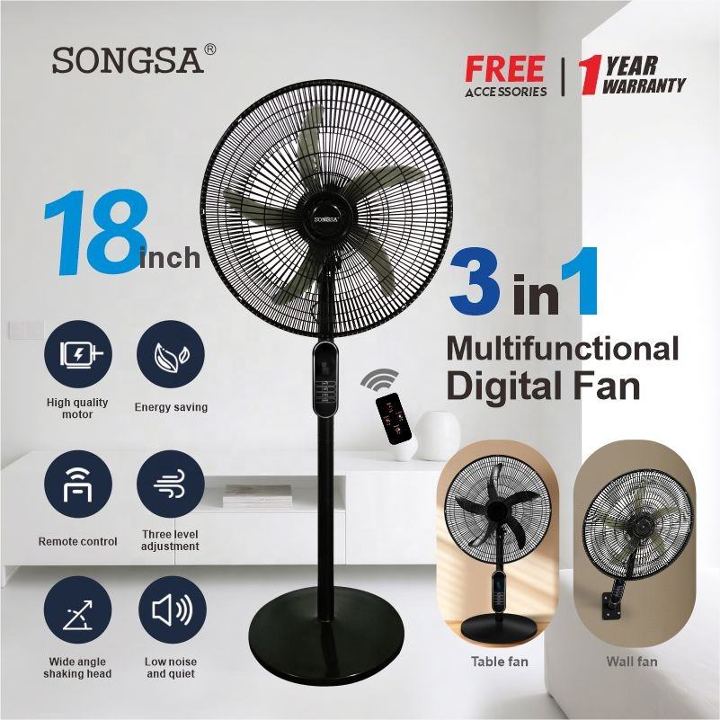 Ventilateur tour multifonctionnel avec télécommande, 18 pouces, 3-en-1, flux d'air réglable, silencieux et oscillant – Prix de gros usine