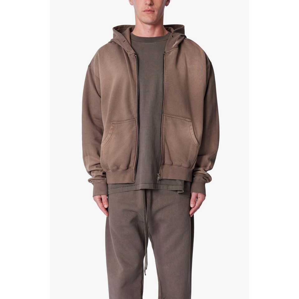 Sweat à capuche zippé décontracté en molleton 100 % coton délavé avec poche kangourou